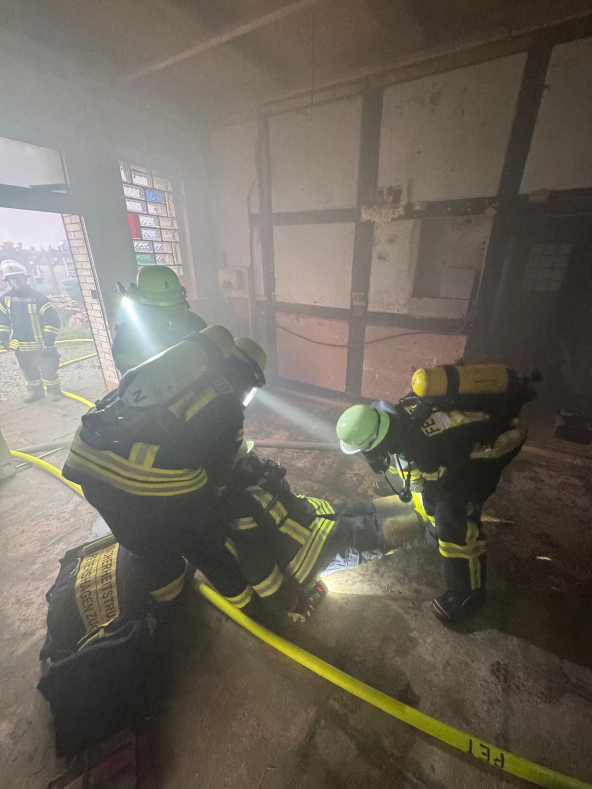 - Garagenbrand nach Schweißarbeiten mit zwei vermissten Personen. Zusätzlich wurden zwei Gasflaschen platziert. Das Besondere an dieser Lage war, dass die Garage unterkellert war. Dies ist eher ungewöhnlich und sollte die Kameraden sensibilisieren bei der Suche umsichtig und gründlich vorzugehen.