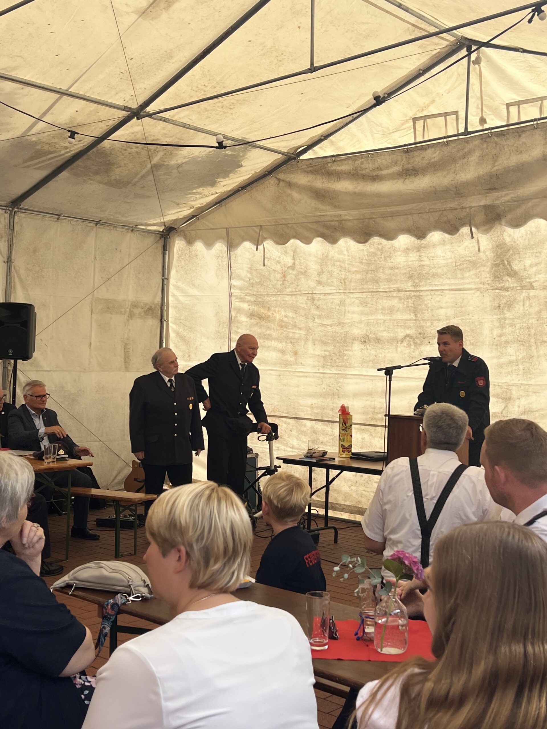 Es wurden in diesem Zuge zwei Kameraden der Löschgruppe Meßlingen zu 60 und 67 Jahre Mitgliedschaft geehrt.