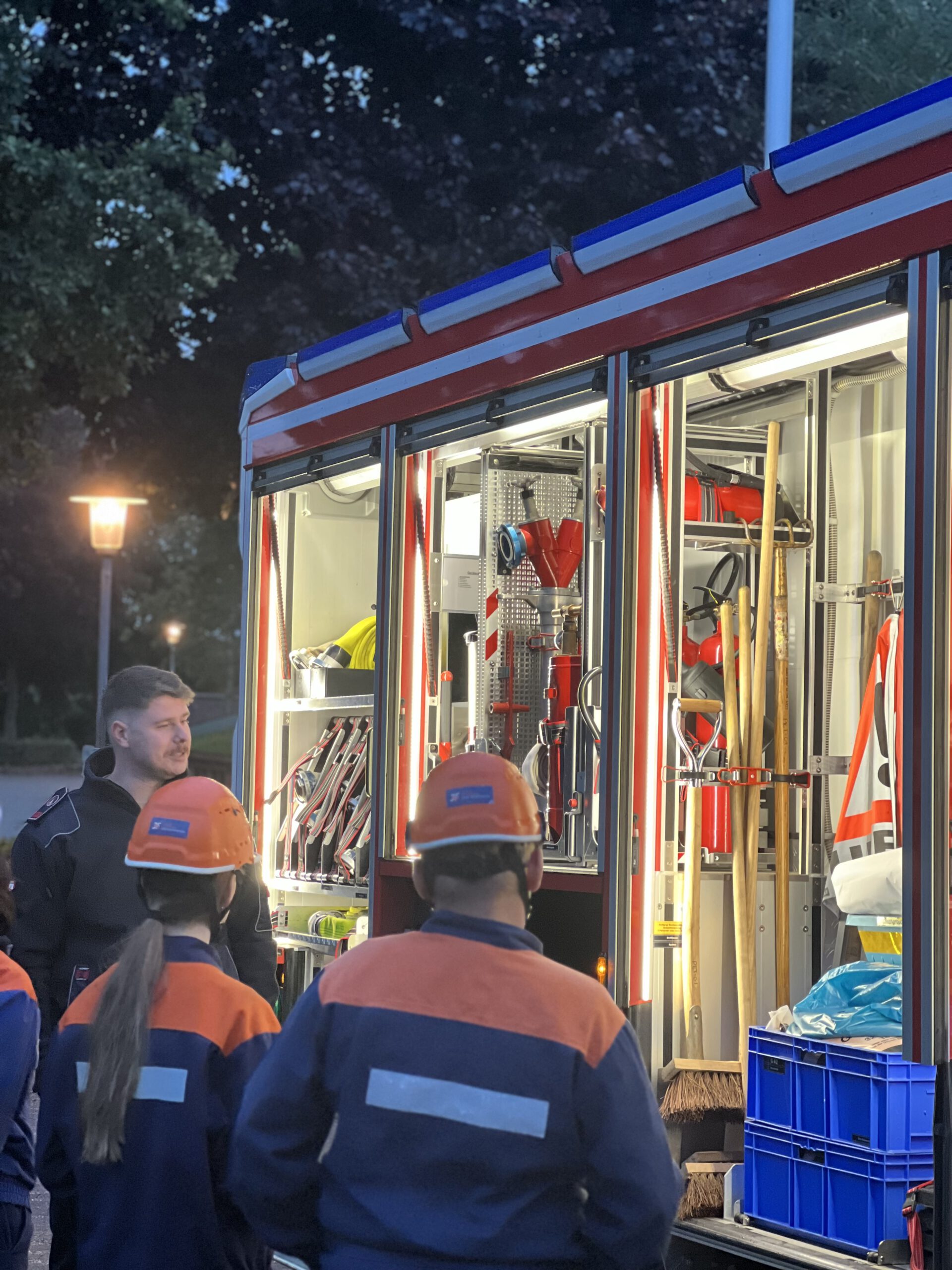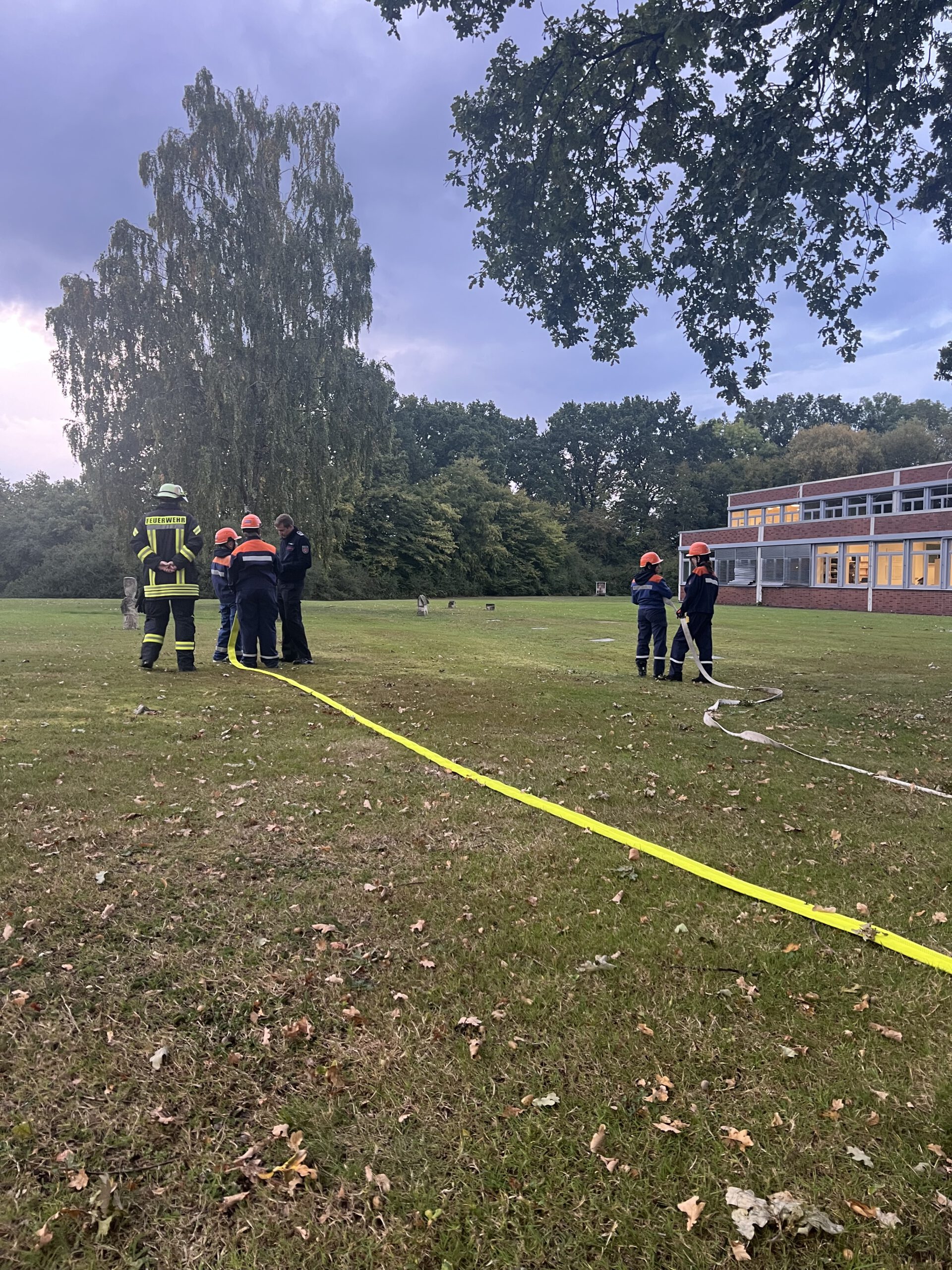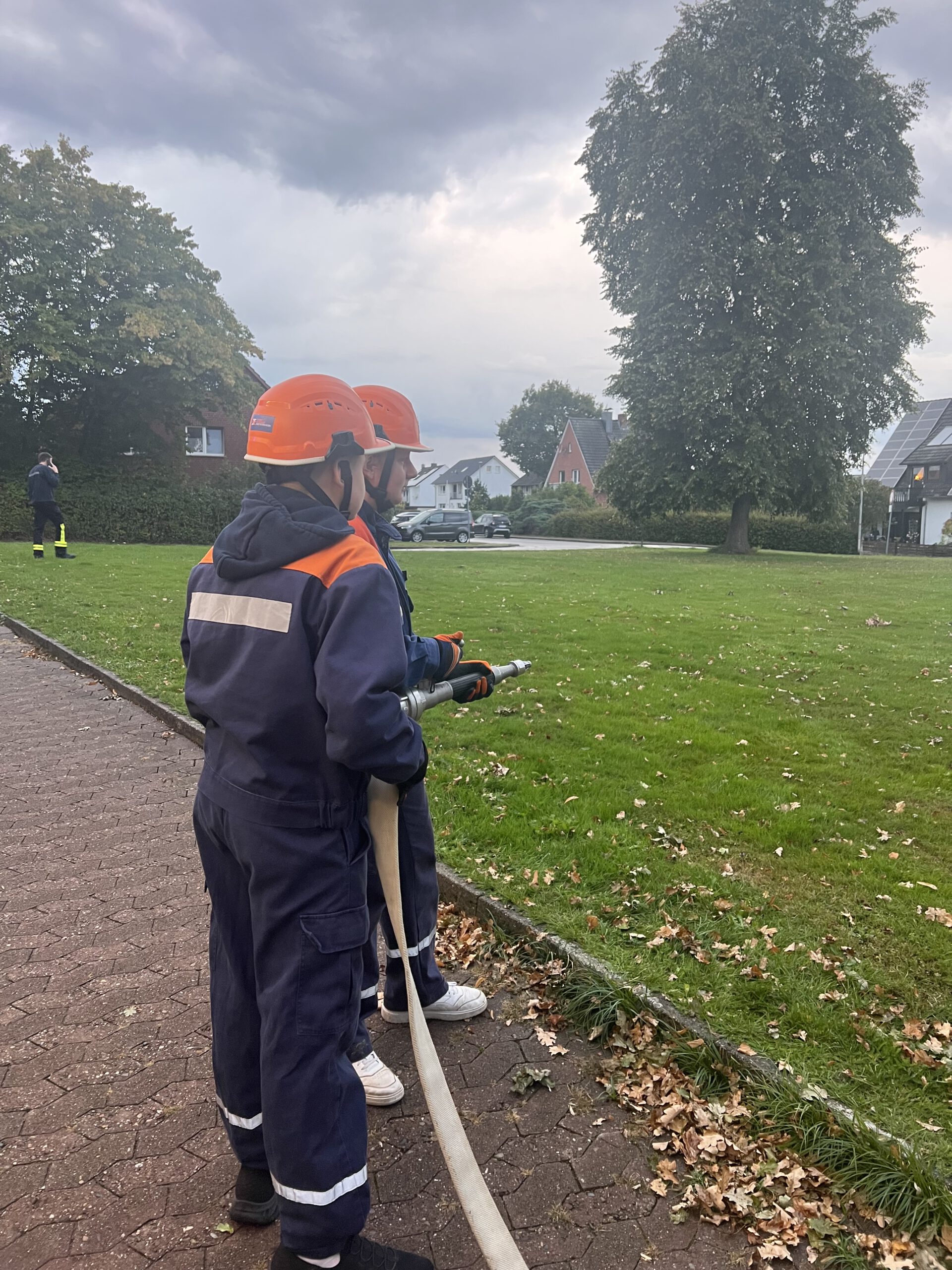 Die Jugendfeuerwehr Petershagen-Ort hat einen Löschangriff mit drei C-Rohren vorgenommen und eine Wasserversorgung vom Hydranten aufgebaut. Im Anschluss haben Niklas und Nico noch Feuerwehrtechnische Geräte aus dem TLF4000 abgefragt. Außerdem musste erklärt werden, wann welches Löschmittel eingesetzt wird.