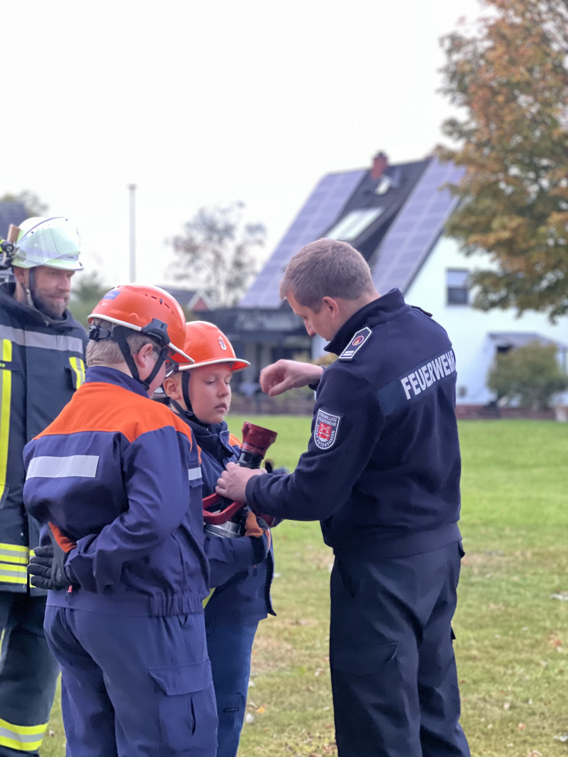Bei der Jugendfeuerwehr Petershagen-Ort war am Montag die Spannung groß. Niklas und Nico, Stadtjugendfeuerwehrwarte, waren beim Jugendfeuerwehrdienst dabei und haben die Jugendflamme in der Stufe 2 abgenommen.