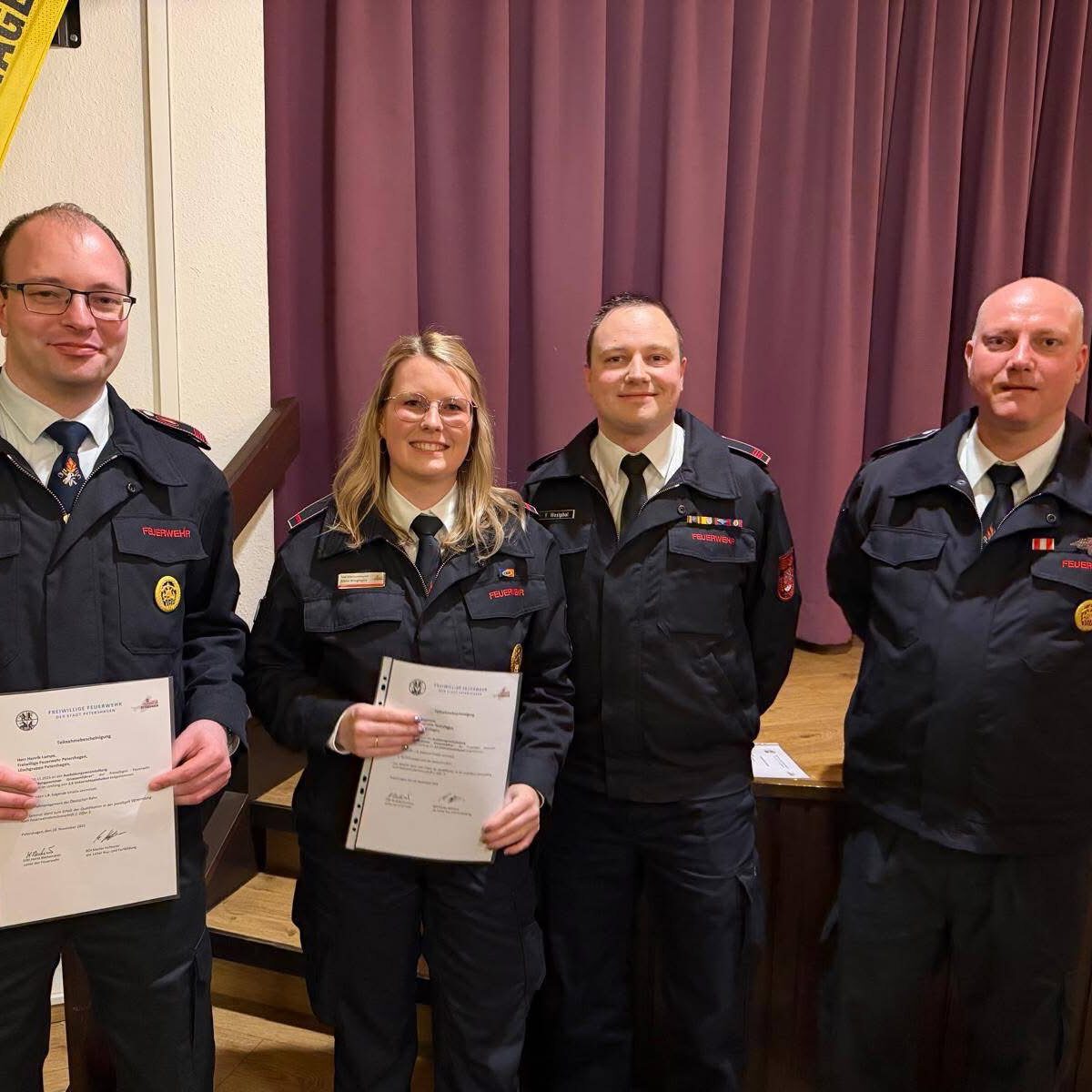Nach den Grußworten wurden verschiedene Lehrgangsbescheinigungen für erfolgreich absolvierte Lehrgänge verteilt.
