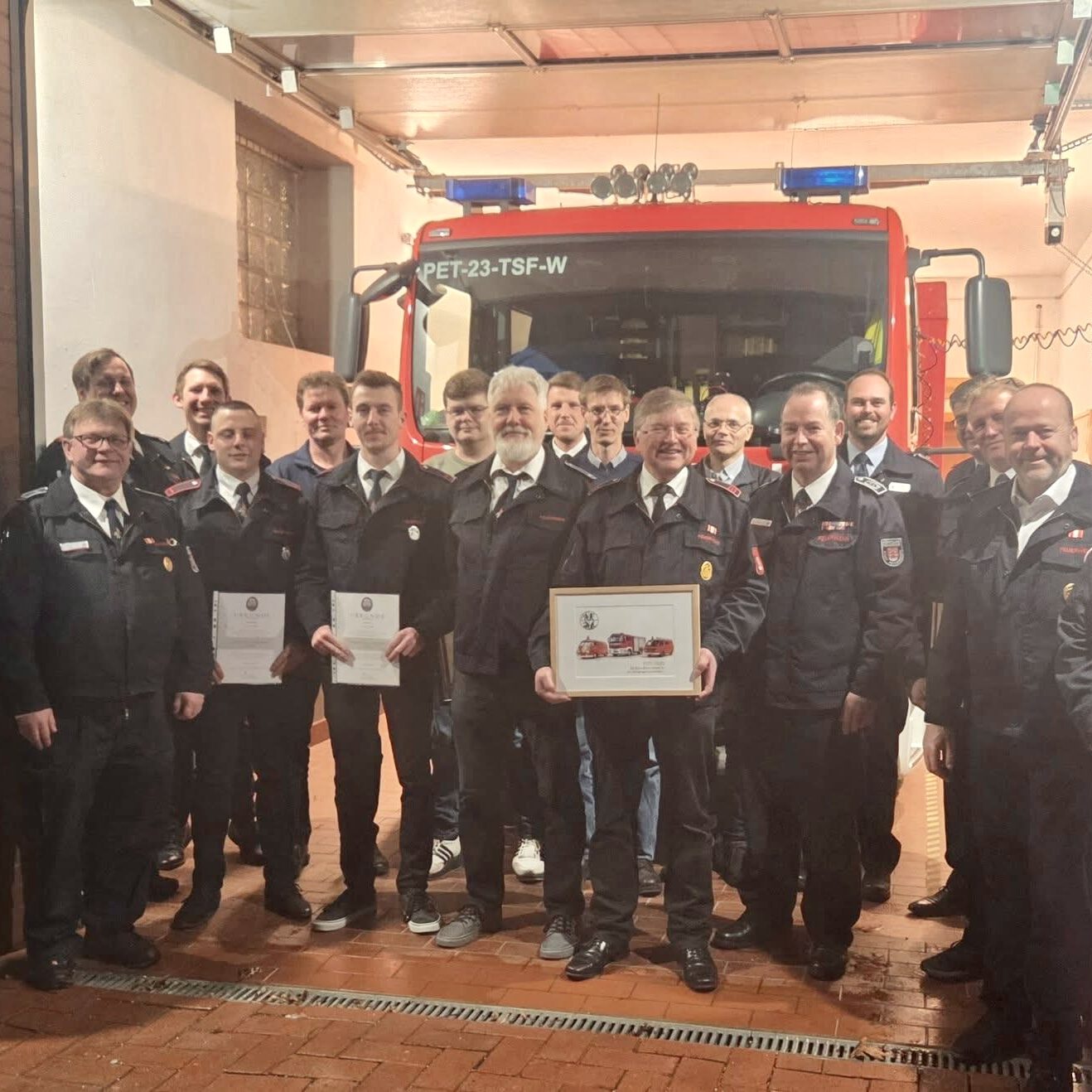 Im Anschluss wurden 18 Mitglieder für 25-, 40- und 50-jährige Mitgliedschaft geehrt. Zu guter Letzt bedankte sich die Löschgruppe mit einem Präsent bei Jürgen Nahrwold, der die beeindruckende Marke von 50 Jahren im aktiven Dienst erreicht hat.